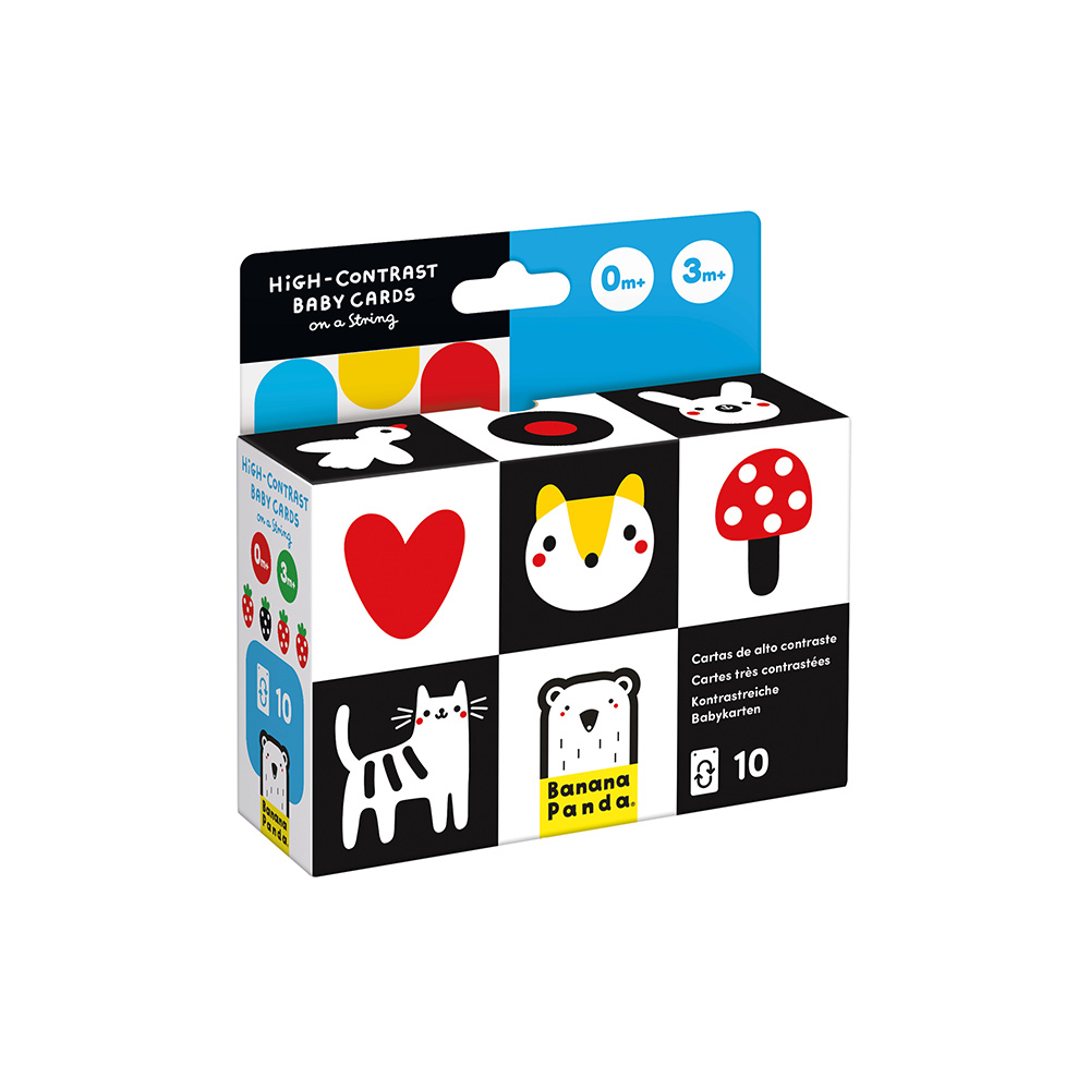 As High Contrast Baby Cards on a String da Banana Panda foram especialmente criadas para estimular a visão dos bebés desde o nascimento.