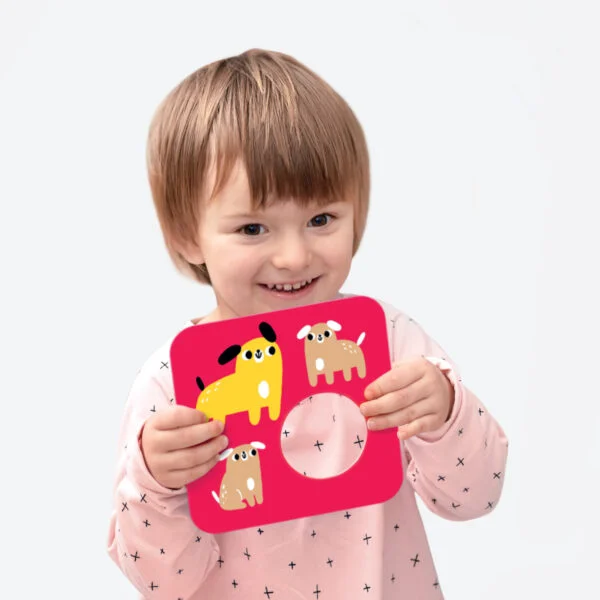 Este conjunto contém 9 puzzles de 2 peças, onde os pequenos são convidados a emparelhar animais, frutas e objetos conhecidos do seu dia-a-dia. Cada par tem um design alegre e cores fortes, ideais para captar a atenção e desenvolver a percepção visual, concentração e coordenação óculo-manual.
