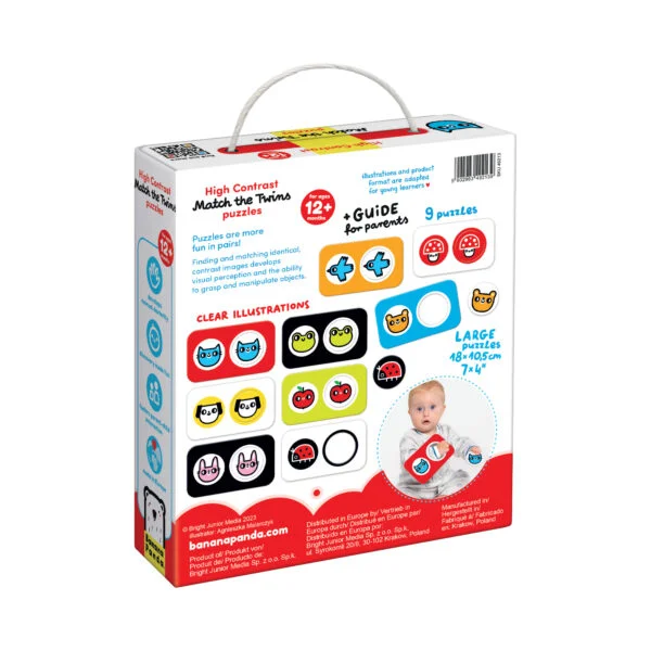 O Match the Twins da Banana Panda foi criado a pensar nos bebés a partir dos 12 meses. Com peças grandes, resistentes e ilustrações de alto contraste, é perfeito para as mãos pequeninas e para estimular os sentidos numa fase crucial do desenvolvimento.