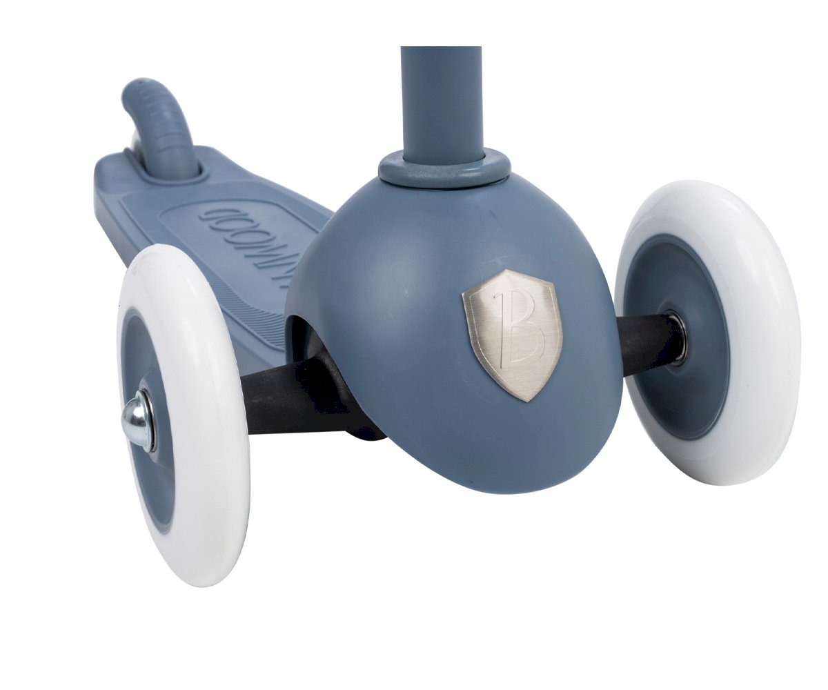 Base de bambu natural ecológico Sistema de direção patenteado "Easy Ride Steering System" 3 rodas para maior equilíbrio e segurança Guiador em alumínio leve com acabamento em cortiça antideslizante Altura ajustável em 3 níveis (com o crescimento da criança) Cesto removível em vime para transportar pequenos brinquedos Design atemporal e minimalista