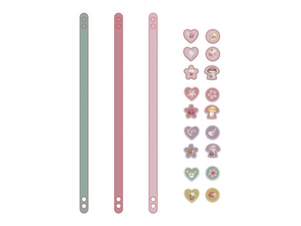 Cria pulseiras encantadas com o novo set Fairy Garden da Little Dutch! Este conjunto mágico inclui 3 pulseiras ajustáveis e 18 peças decorativas com ícones do mundo das fadas, como corações, flores, cogumelos, abelhas e pequenos animais da floresta.