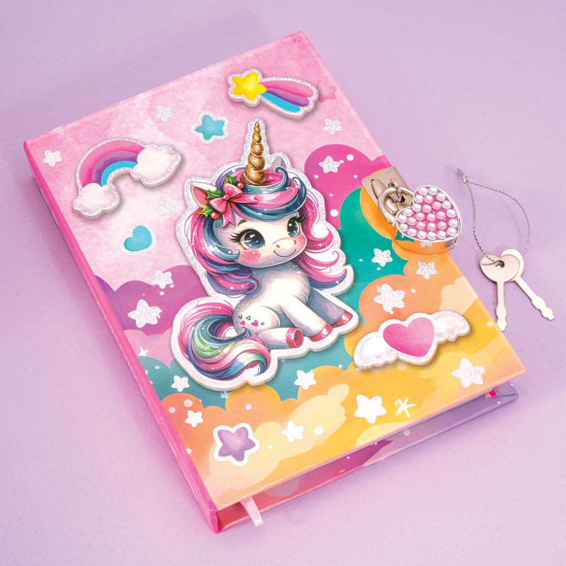 Perfeito para pequenas sonhadoras, este diário encantador tem uma capa 3D brilhante e detalhes encantadores.
