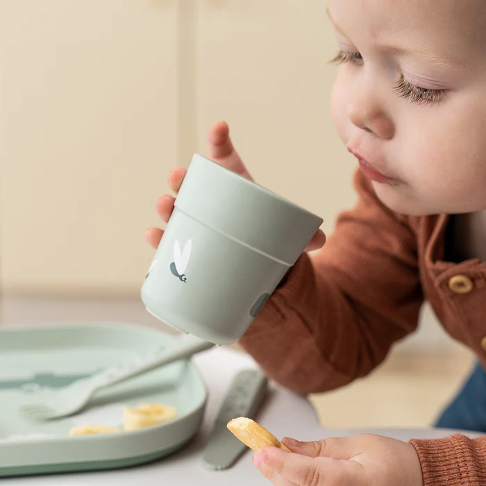 O Mini Copo Foodie da Done by Deer foi especialmente pensado para as mãos pequenas que estão a dar os primeiros passos na autonomia à mesa.