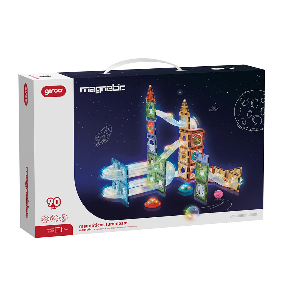 Explora um universo de criatividade e luz com o incrível Jogo Magnético Luminoso com 90 Peças da marca Giros. Este brinquedo educativo STEAM combina formas magnéticas 3D coloridas com tubos e bolas para criar percursos cheios de magia luminosa. Ideal para crianças dos 3 aos 7 anos, este conjunto estimula a imaginação e a aprendizagem de conceitos fundamentais da física, engenharia e artes.
