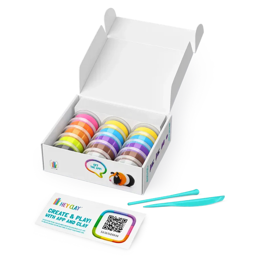 Diverte-te a criar os cães mais engraçados com o kit Hey Clay Dog Story! Inclui 15 boiões de pasta de modelar leve, colorida e fácil de moldar, ideal para mãos pequenas. Acompanha instruções passo a passo com acesso a uma app gratuita para modelar 6 personagens caninas adoráveis: do pug ao cão-polícia! Perfeito para estimular a motricidade fina, criatividade e concentração das crianças.