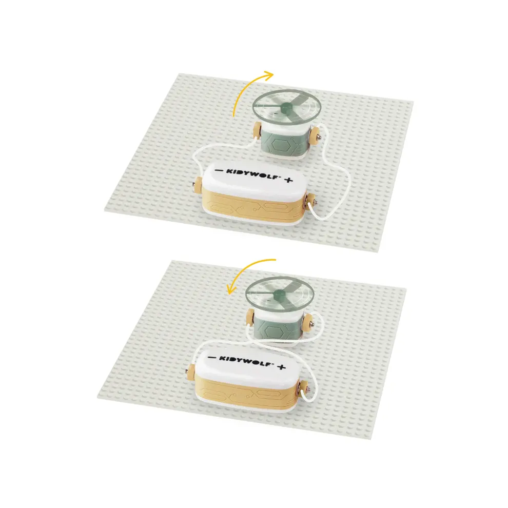 O kit inclui 11 blocos eletrónicos (motor, LED, interruptor, hélice, entre outros), 2 placas base, 10 conectores e um guia ilustrado passo-a-passo. As peças conectam-se facilmente sem necessidade de ferramentas, proporcionando uma experiência educativa intuitiva. As crianças podem criar mais de 99 montagens diferentes, desde as mais simples até às mais complexas, acompanhando o seu progresso e desenvolvendo pensamento lógico e criatividade.