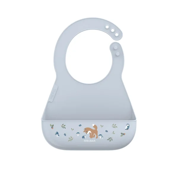 Recomendado a partir dos 6 meses Silicone 100% alimentar, livre de BPA Flexível e confortável para o bebé Bolso apanhador integrado Fecho ajustável com vários níveis Fácil de limpar: lavar com água morna e sabão ou na máquina Padrões exclusivos da Little Dutch: Forest Friends e Fairy Garden