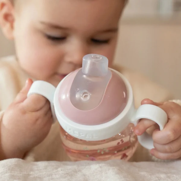 Capacidade: 200 ml Inclui tampa higiênica transparente Bico antiderrame em silicone suave Duas pegas fáceis de agarrar Material: Tritan (livre de BPA) Adequado para máquina de lavar loiça (parte superior) Ideal para bebés a partir dos 6 meses