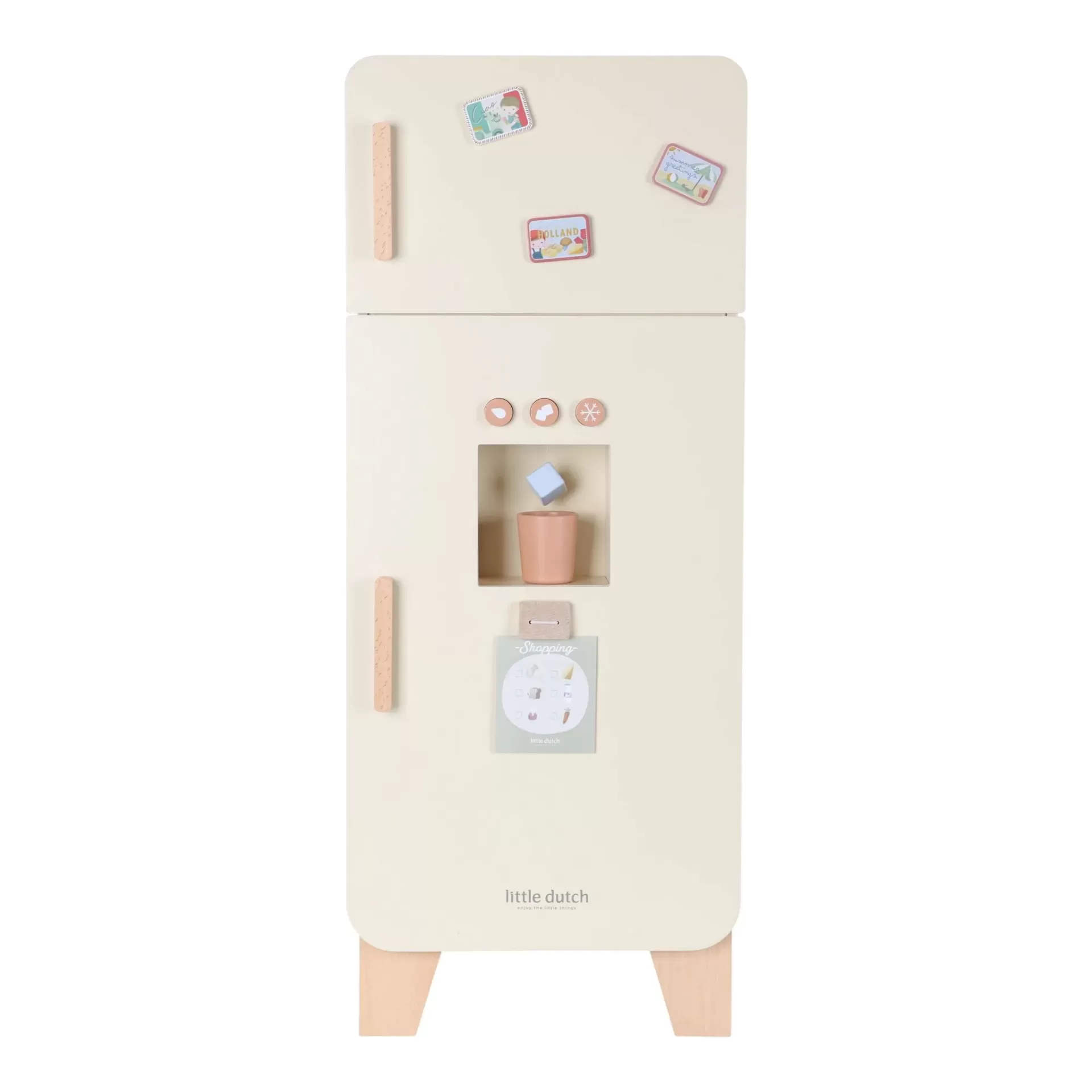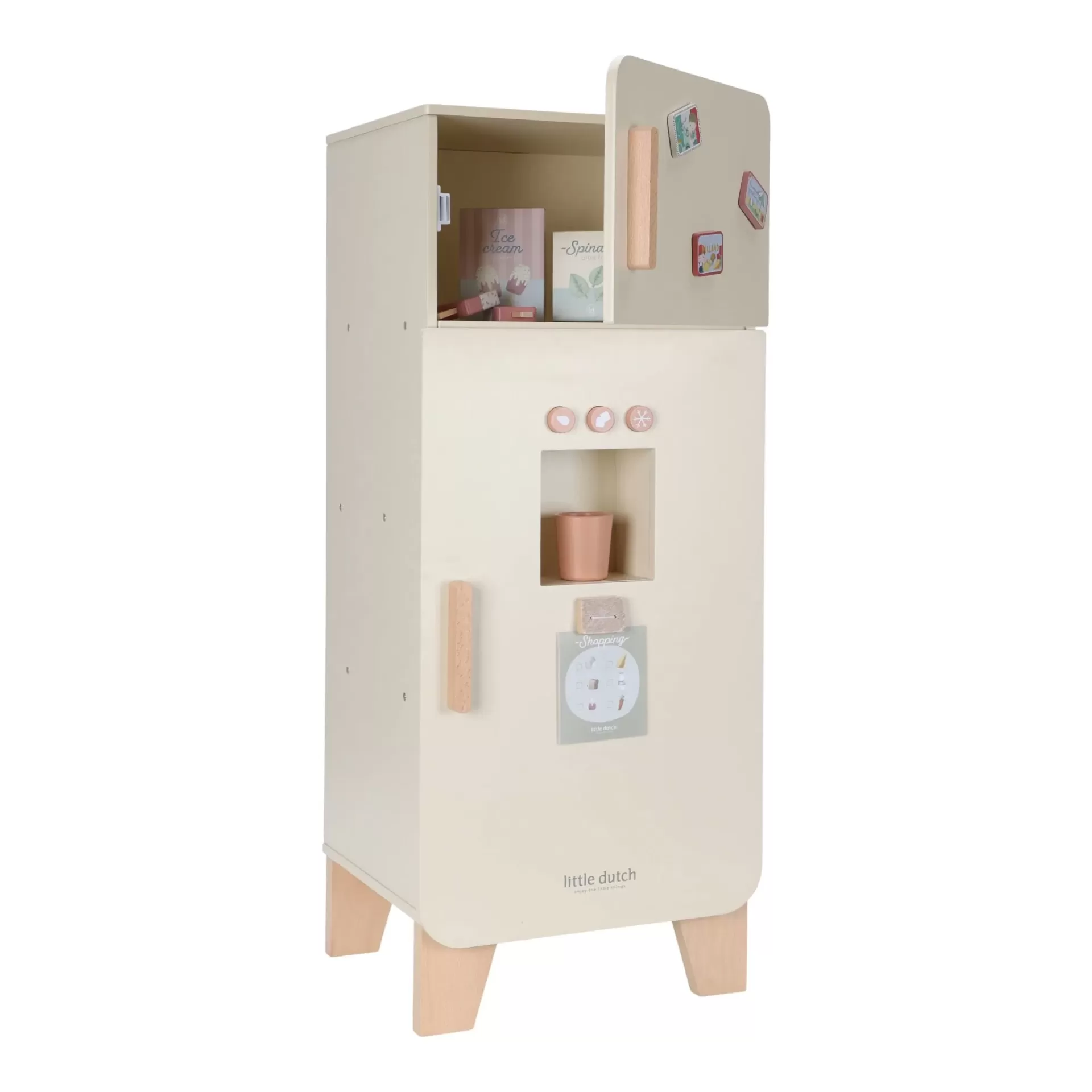 Transforma qualquer cozinha de brincar num verdadeiro lar com este elegante frigorífico de madeira da Little Dutch!
