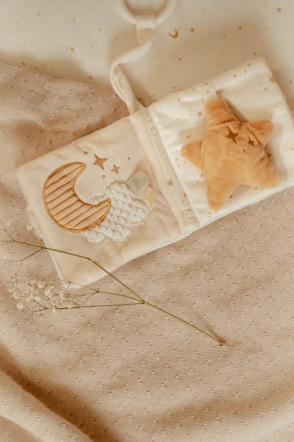 Perfeito para usar no berço, carrinho ou tapete de atividades, este livro sensorial convida os bebés a explorar com as mãos e a boca, promovendo o desenvolvimento da motricidade fina, a curiosidade e o foco visual. Com ilustrações delicadas e tons neutros inspirados na natureza, é também um presente encantador e intemporal para recém-nascidos.