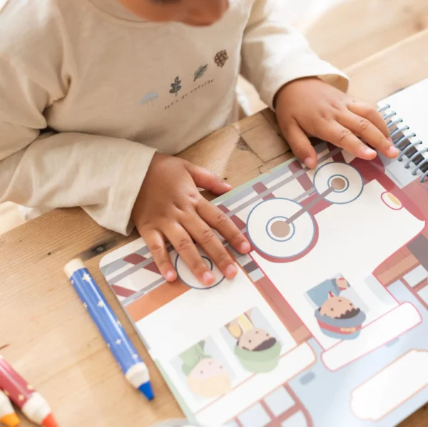 O Livro para Colorir Entre Linhas – Colour Magic – Jim & Friends da Little Dutch é perfeito para crianças que adoram veículos, aventuras e actividades criativas. As linhas-guia facilitam o acto de colorir, ajudando os mais pequenos a desenvolver a coordenação motora sem frustração.