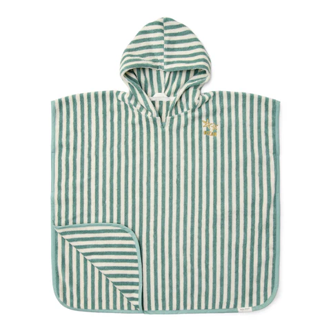 Little Dutch Poncho de Praia Seashells Verde com Riscas