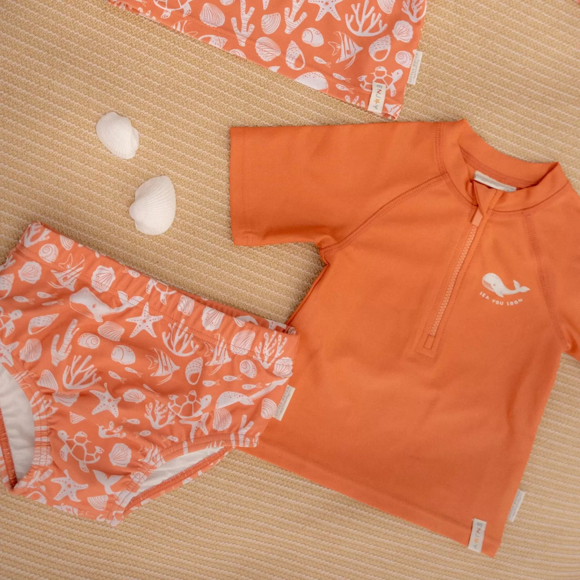 Este modelo pode ser combinado com a fralda de banho ou calções da mesma coleção para um conjunto coordenado e funcional.