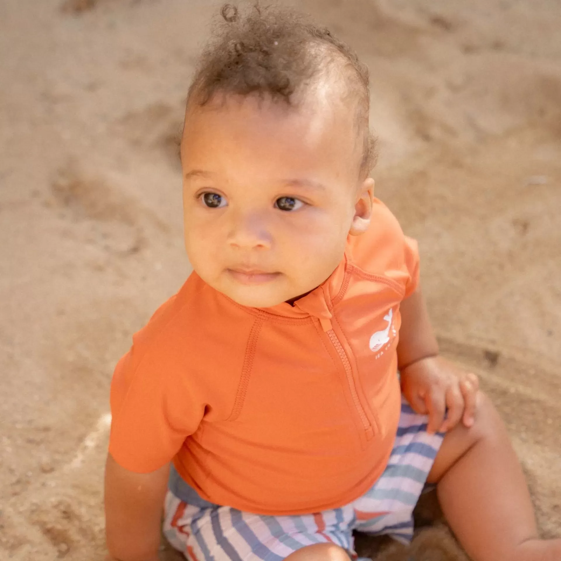 Confeccionado com nylon reciclado e spandex, oferece conforto, elasticidade e secagem rápida. A proteção UV 40+ mantém a pele do seu pequeno protegida dos raios solares durante todo o dia. A prática abertura com fecho à frente facilita vestir, mesmo com o tecido molhado.