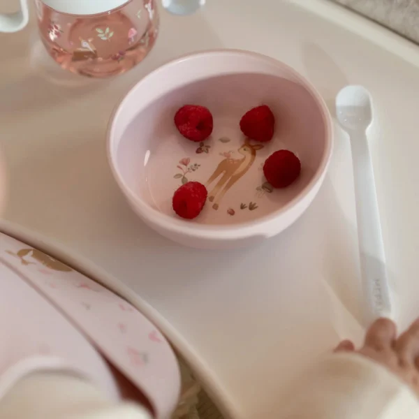 A hora da refeição vai ganhar ainda mais encanto com a Tijela Infantil Mio – Fairy Garden da Little Dutch! Com um design delicado e encantador, esta taça em tons de rosa traz a ilustração adorável de uma corça rodeada por flores e elementos da natureza, ideal para tornar cada refeição mais divertida para os mais pequenos.