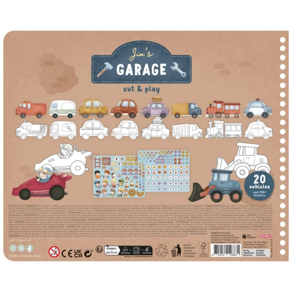 O Livro de Recorte com Tesoura – A Garagem – Jim & Friends da Little Dutch é uma actividade criativa ideal para crianças a partir dos 3 anos. Inclui uma tesoura segura adaptada às mãos pequenas, páginas ilustradas com o tema da garagem e veículos, e peças para recortar e brincar.