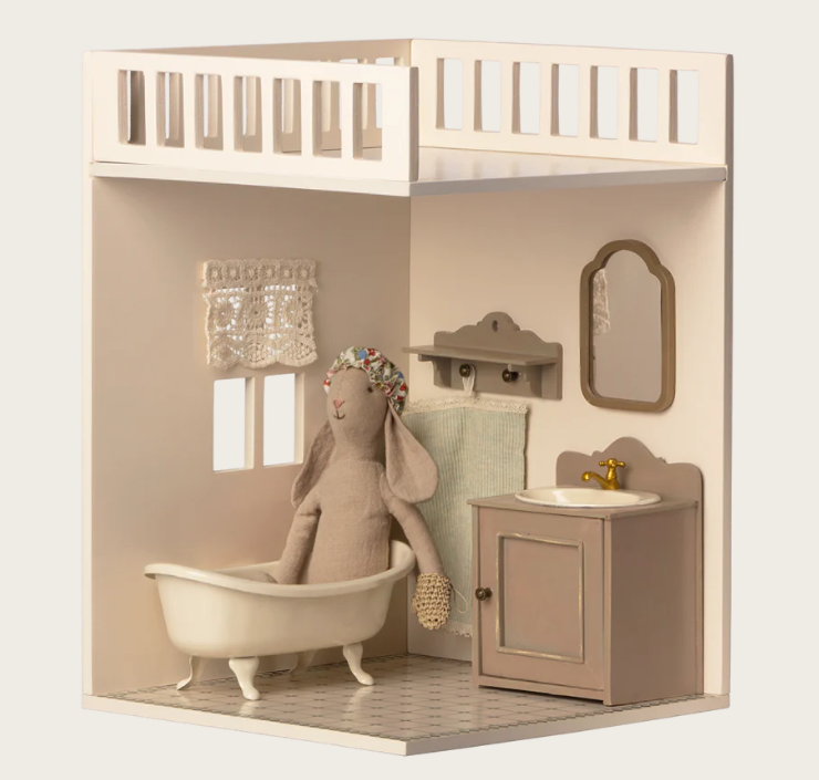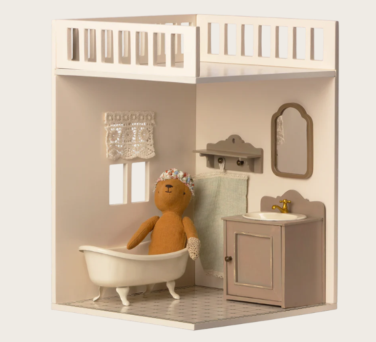 O Anexo Casa de Banho da Maileg House of Miniature é o complemento perfeito para completar a casa de bonecas Maileg e tornar o universo dos ratinhos ainda mais realista.