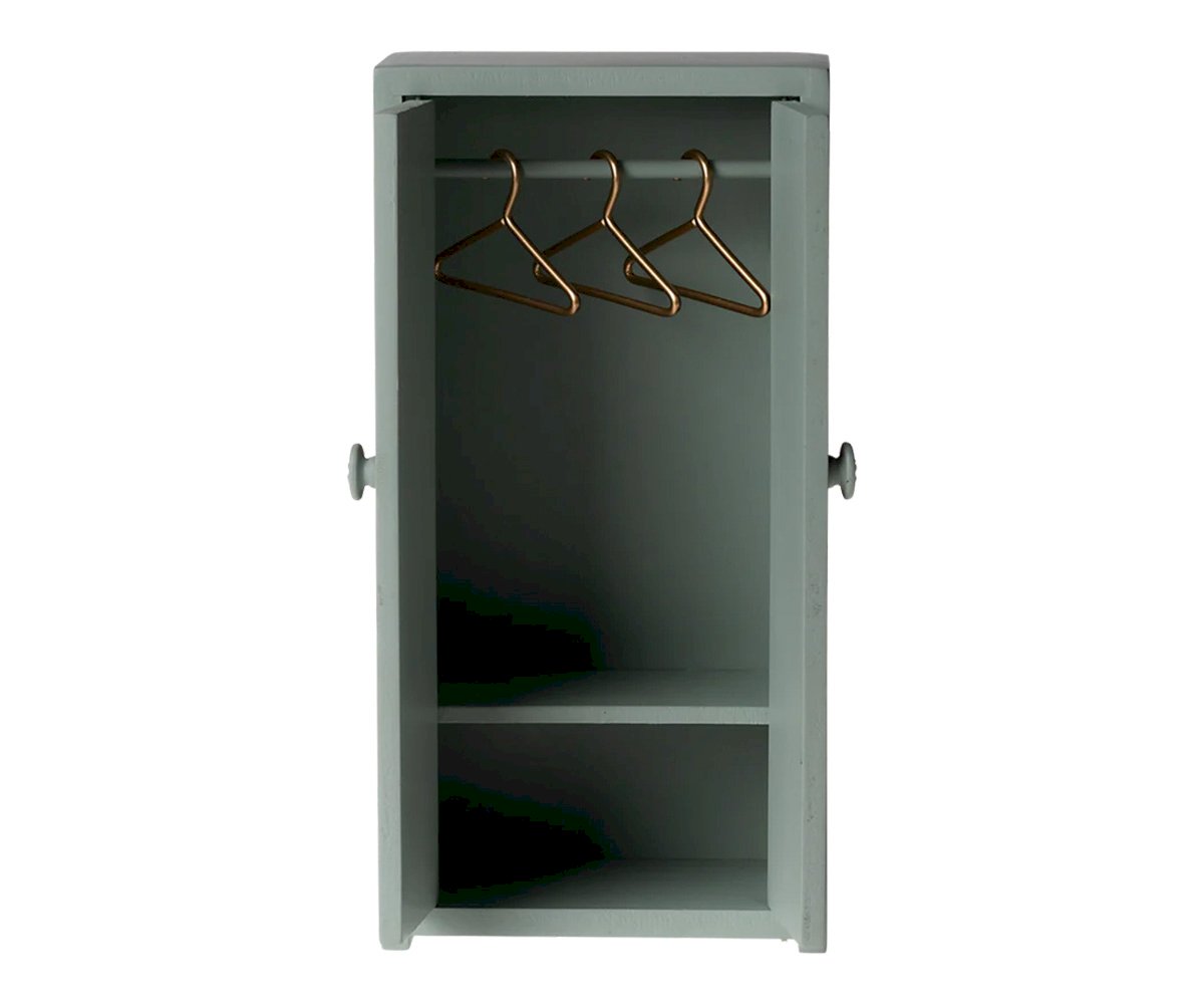 O Armário para Ratinho Maileg – Azul Suave é o acessório ideal para ajudar a família de ratinhos a manter as suas roupinhas bem organizadas. Fabricado em madeira e pintado num delicado tom azul suave, este pequeno armário inclui três cabides dourados, perfeitos para pendurar vestidos, casacos e outros conjuntos Maileg.