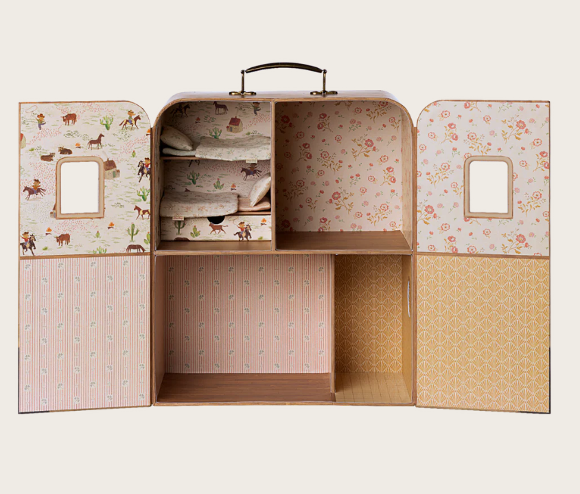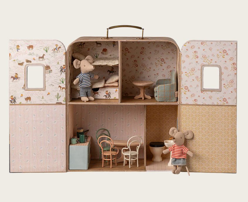 A Casa Suitcase para Ratinhos da Maileg é uma encantadora casa de bonecas portátil, pensada para dar vida ao universo mágico dos famosos ratinhos Maileg.