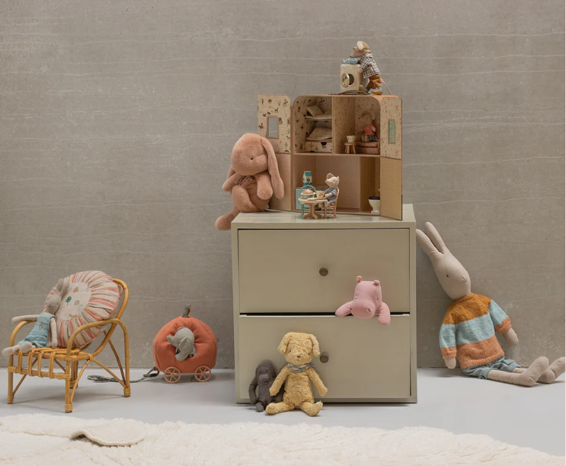 Compatível com ratinhos tamanho “irmão/irmã mais velha” e acessórios Maileg, esta casa estimula o jogo simbólico, a criatividade e o desenvolvimento da narrativa.