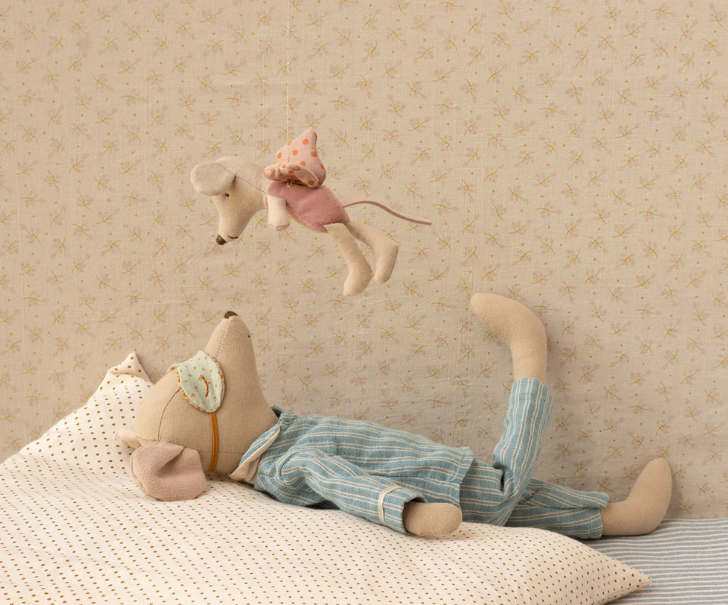 Feito com tecidos suaves e detalhes encantadores, este ratinho é mais uma peça amorosa da coleção Maileg, que cativa pela qualidade e charme vintage.