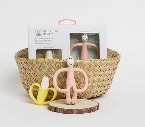 Este adorável pack presente de mordedores da Matchstick Monkey traz dois aliados perfeitos para o alívio do desconforto da dentição do bebé: o icónico mordedor macaco em silicone e o mordedor banana texturizado, ambos com design ergonómico para mãos pequeninas.