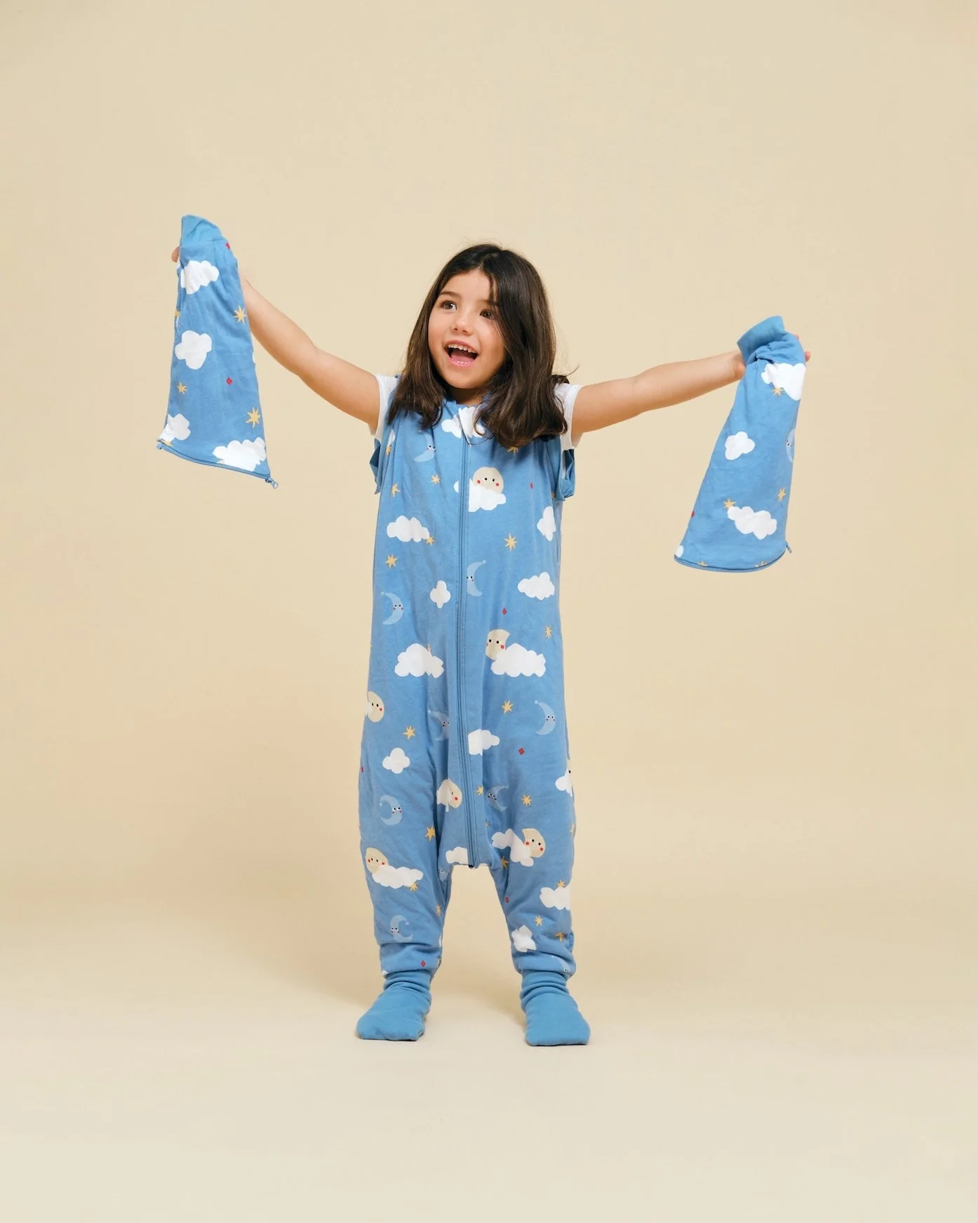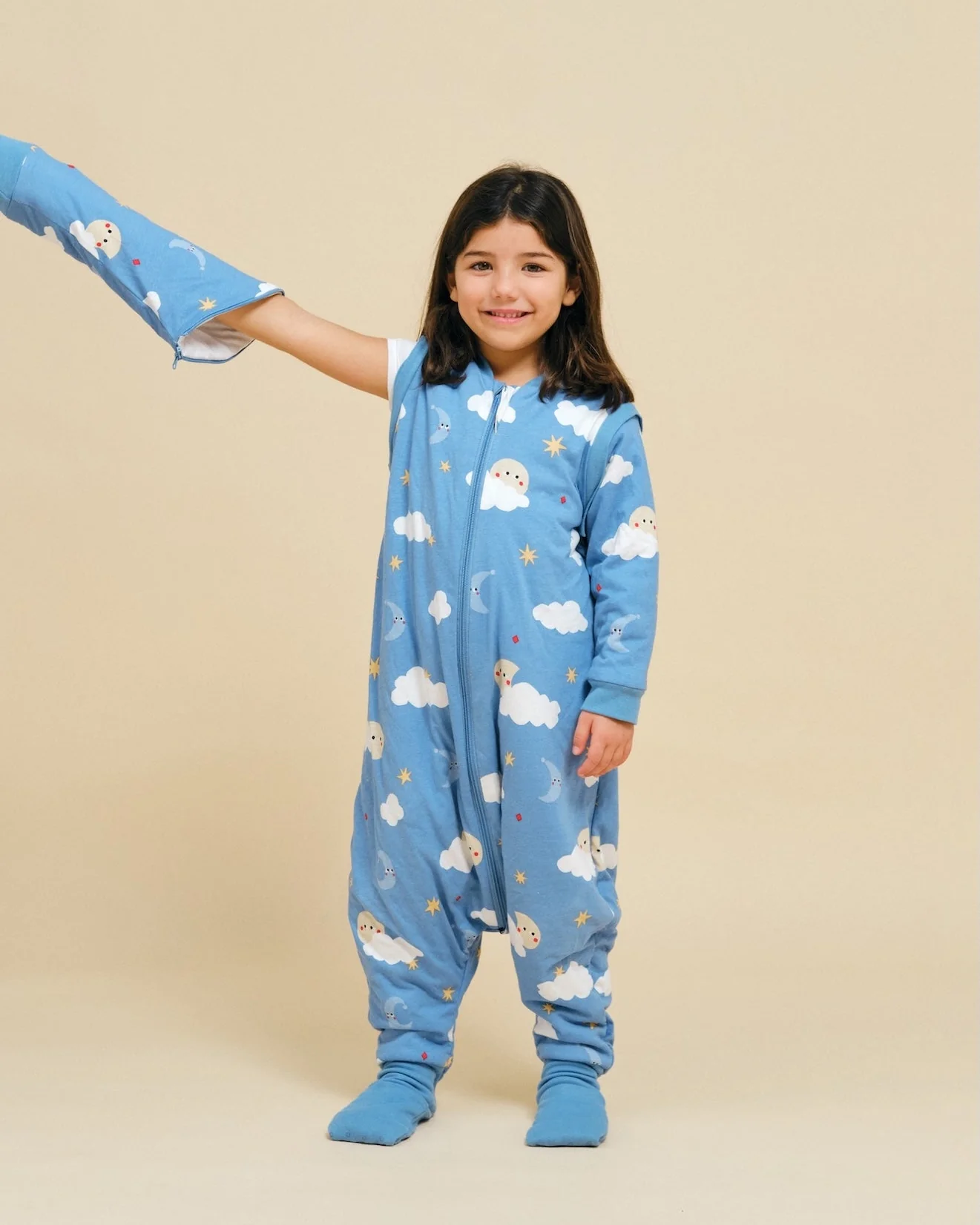 Este saco de dormir da Molis&Co é a escolha perfeita para noites tranquilas e cheias de conforto. Com um adorável padrão de nuvens e luas "good Night", este modelo combina o design mais amoroso com a liberdade de movimentos, graças às perninhas com punhos elásticos e mangas removíveis. O TOG 1 é ideal para quartos com temperaturas entre 20ºC e 22ºC, tornando-o perfeito para a primavera e outono ou para noites de verão mais frescas.