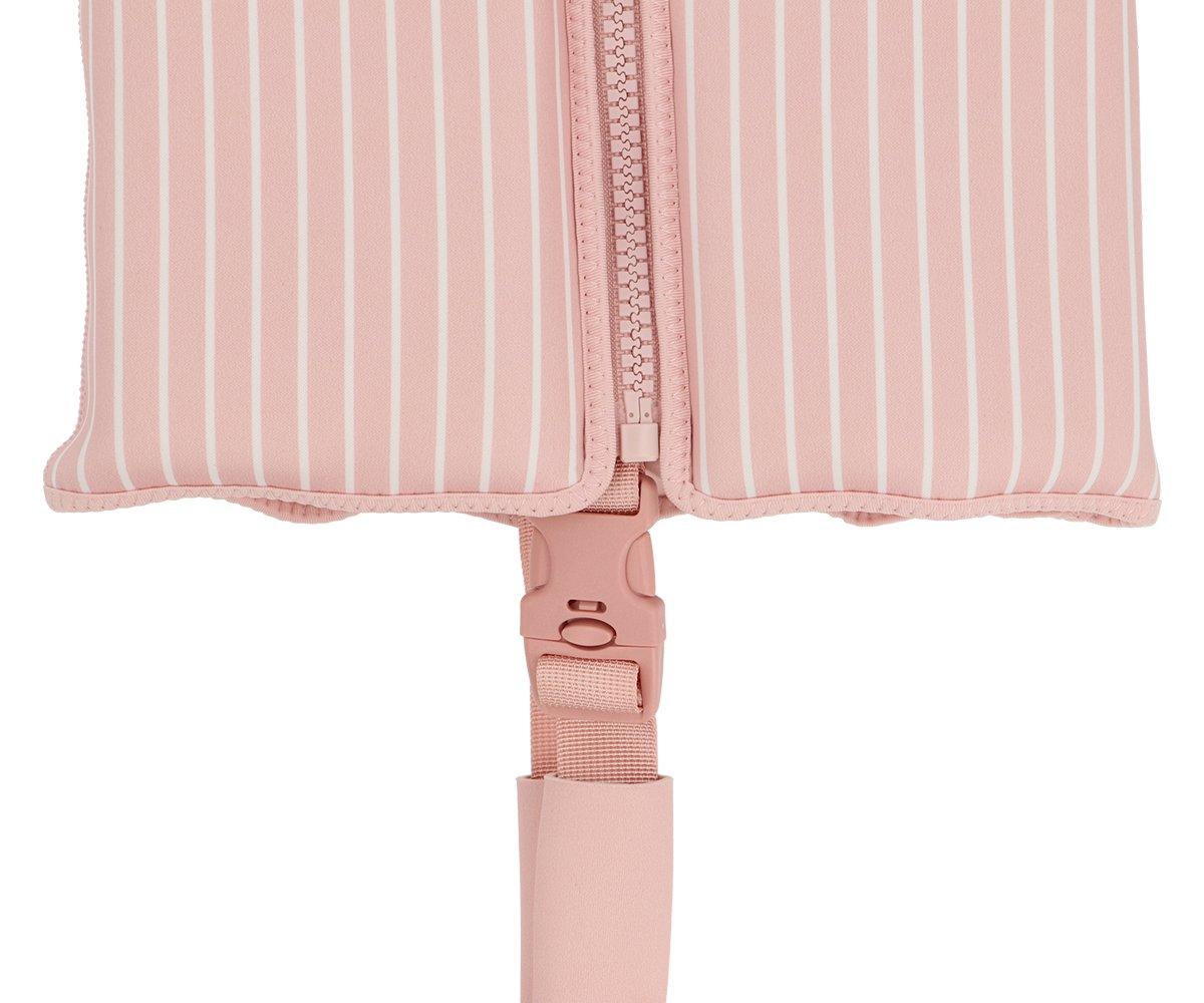 Com design encantador de tucanos sobre um fundo rosa suave, o colete possui 24 peças de flutuação (divididas em 8 compartimentos com 3 elementos cada), o que permite ajustar gradualmente a flutuabilidade, ajudando a criança a ganhar autonomia na água com confiança. Inclui ainda uma alça de segurança entrepernas revestida a neoprene para evitar desconforto e manter o colete no lugar durante o uso.