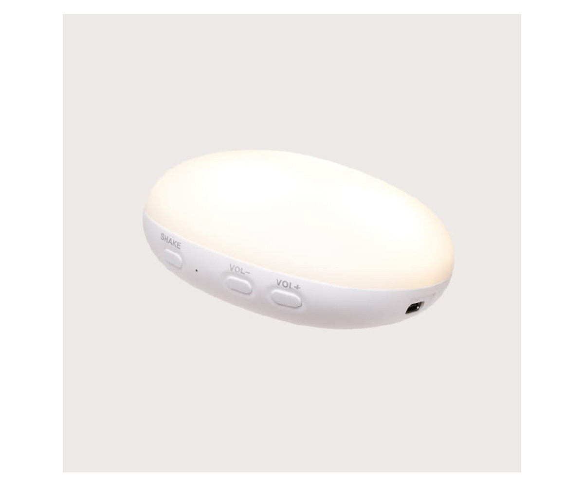 Inclui 5 sons naturais — música relaxante, batimentos cardíacos, vento, som do mar e chuva — além de melodias clássicas suaves. O detetor inteligente de choro ativa automaticamente as funções calmantes quando o bebé precisa, oferecendo conforto imediato. A lâmpada acende com uma simples agitação, e o volume/duração são totalmente personalizáveis. Possui ainda função de gravação de voz, ideal para reproduzir a voz dos pais.