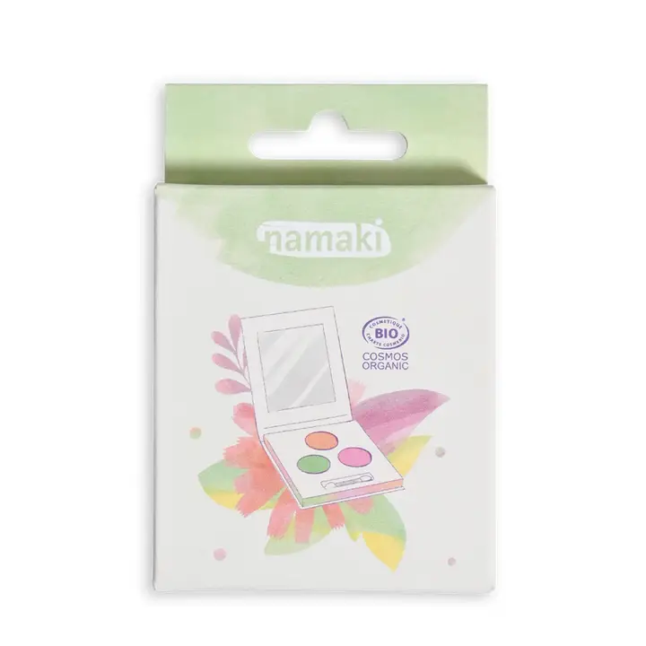A Paleta de Sombras para Olhos Infantil da Namaki é perfeita para crianças que adoram brincar à maquilhagem de forma segura, criativa e responsável. Fabricada em Itália, esta maquilhagem infantil é vegan e biológica, desenvolvida especialmente para respeitar a pele sensível das crianças.