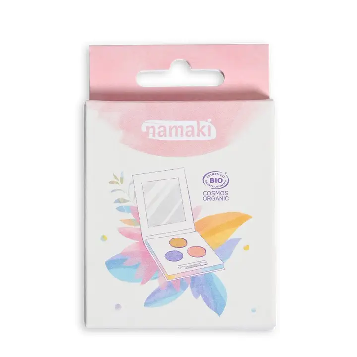 A Paleta de Sombras para Olhos Infantil da Namaki é perfeita para crianças que adoram brincar à maquilhagem de forma segura, criativa e responsável. Fabricada em Itália, esta maquilhagem infantil é vegan e biológica, desenvolvida especialmente para respeitar a pele sensível das crianças.
