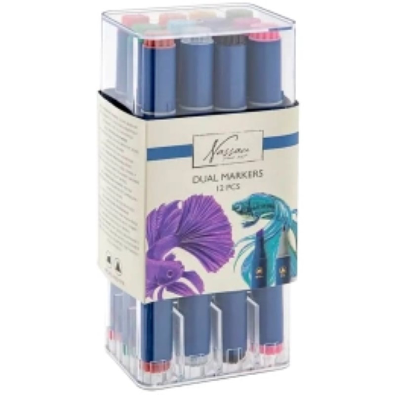 O conjunto de 12 marcadores de ponta dupla da Nassau Fine Art é perfeito para artistas, ilustradores e apaixonados por arte. Cada marcador apresenta duas pontas: uma fina (1-2 mm) para detalhes e uma larga (6 mm) para preenchimentos rápidos e marcantes. Com tinta à base de álcool, oferecem cores vivas, resistentes e com excelente cobertura em diversos tipos de papel.