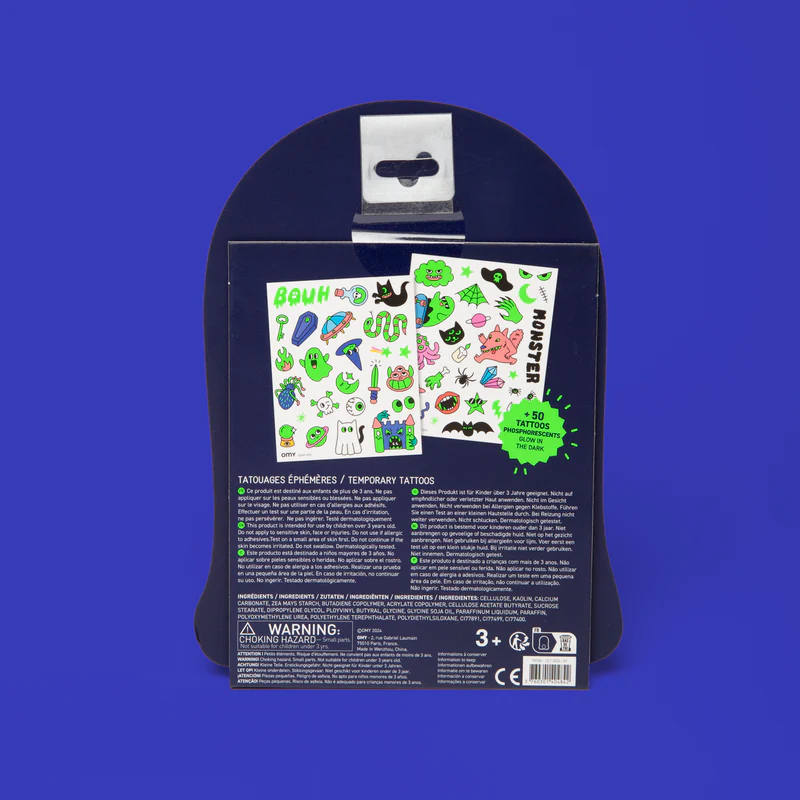 Tatuagens Temporárias BOO da OMY – Um kit monstruosamente divertido com mais de 50 tatuagens para crianças! Perfeito para festas de Halloween, brincadeiras criativas ou simplesmente para dar asas à imaginação.