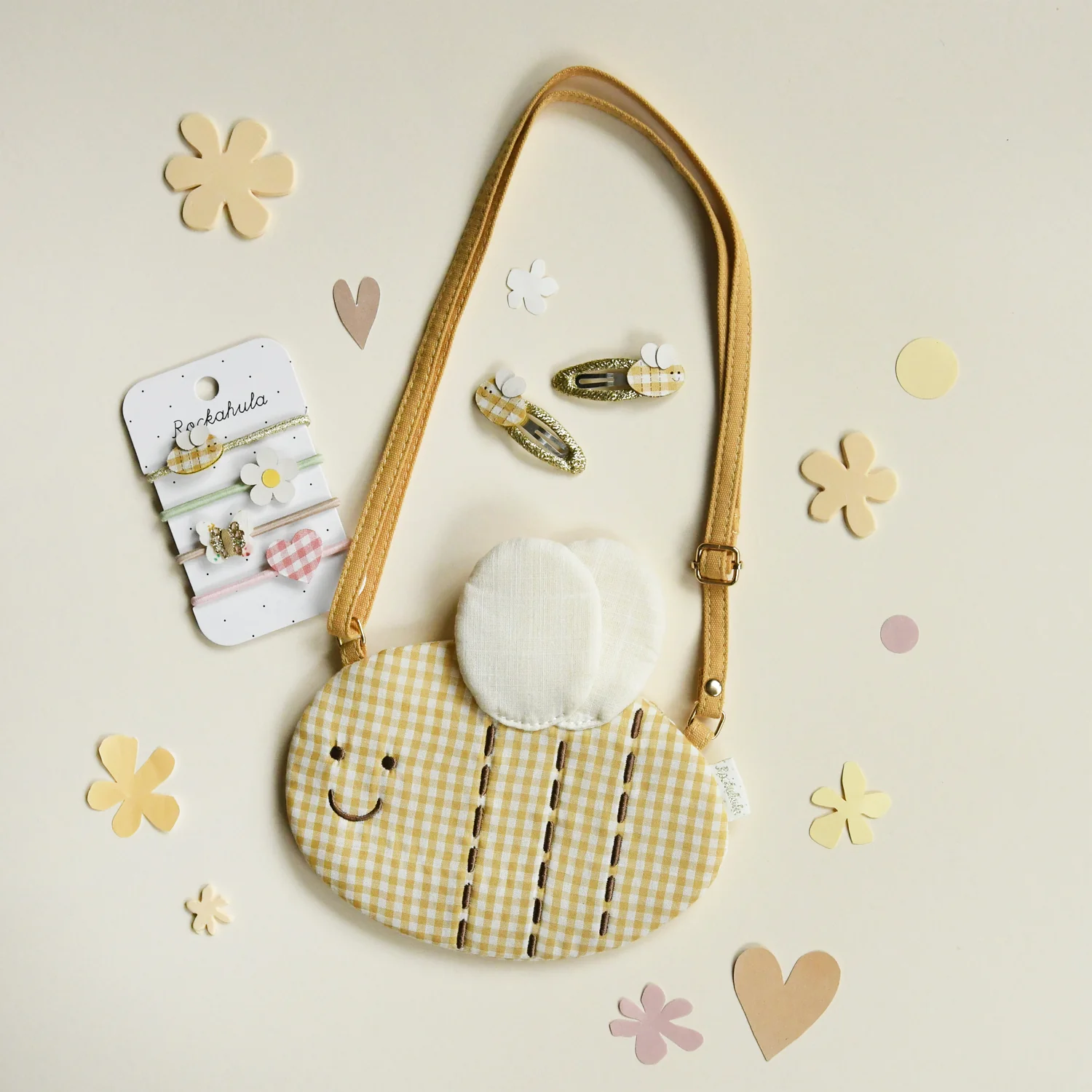 Adiciona um toque de magia ao visual das crianças com os Ganchos de Cabelo Abelha Beryl Rockahula! Cada gancho apresenta uma adorável abelha, fixada sobre uma fita de gorgorão dourada para um acabamento encantador.