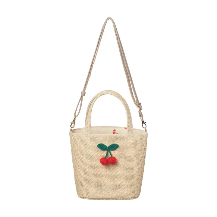 Características: Estrutura em corda entrançada leve e resistente Aplicação decorativa de cerejas em relevo Duas pegas de mão Alça ajustável e removível Interior forrado Leve e confortável para uso diário Marca: Rockahula