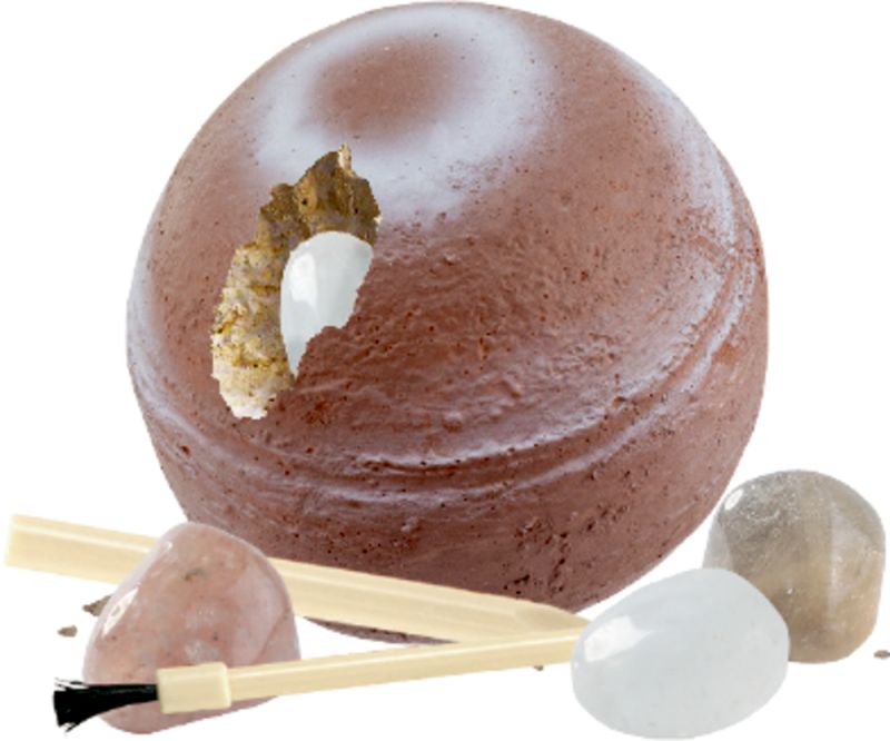 Este conjunto inclui um bloco de escavação em forma de planeta com 3 pedras preciosas verdadeiras escondidas no interior. Utiliza o escopro e o pincel incluídos para revelar os tesouros como um verdadeiro arqueólogo.