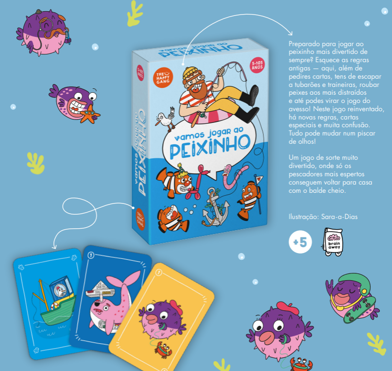 O clássico ganhou uma nova vida com o jogo Vamos Jogar ao Peixinho da The Happy Gang! Esqueça as regras antigas – aqui, além de pedir cartas, vais ter de escapar a tubarões e traineiras, roubar peixes aos adversários e até virar o jogo do avesso.
