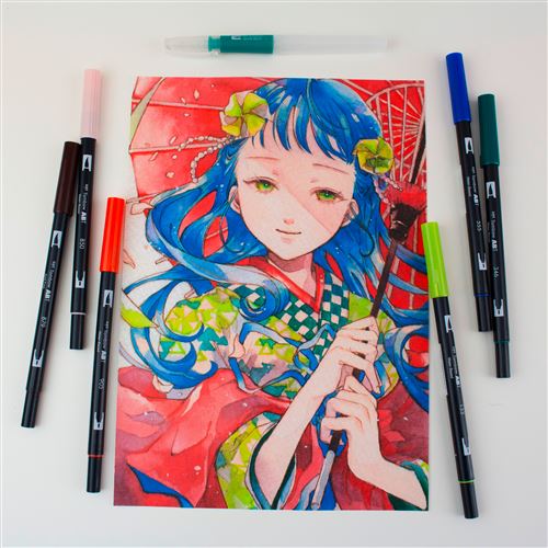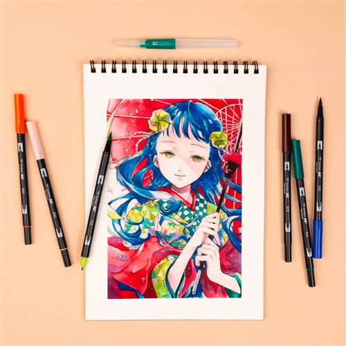 Descobre o universo da arte manga com o set Tombow ABT Dual Brush Pens Manga Wind! Este conjunto inclui 6 marcadores de ponta dupla (ponta pincel flexível e ponta fina), perfeitos para contornos precisos, preenchimentos suaves e efeitos de aguarela. A tinta à base de água permite misturas de cor harmoniosas e degradês incríveis.