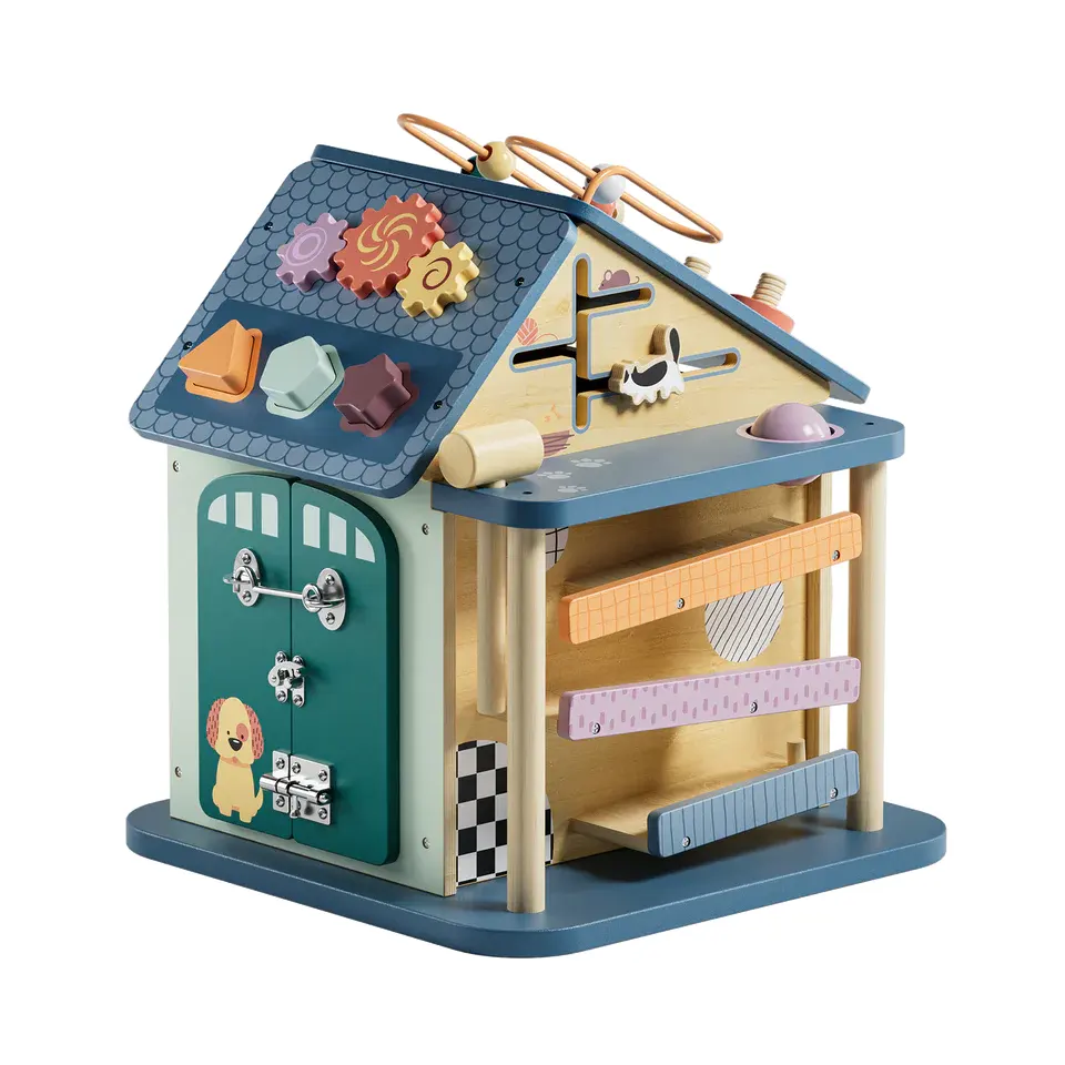Com um design inspirado numa casa de campo encantadora, esta Casa de Atividades 12 em 1 da TopBright oferece 12 atividades diferentes que estimulam o desenvolvimento sensorial, a coordenação motora e a resolução de problemas. Desde rodas dentadas giratórias, formas para encaixar, trilhos com peças deslizantes e fechaduras para abrir e fechar, esta casa é um verdadeiro centro de aprendizagem!