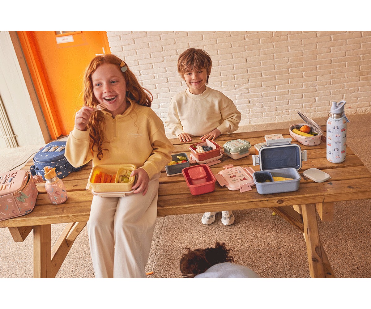 Fabricada em polipropileno livre de BPA, é segura para contacto com alimentos e ideal para uso diário. O fecho com quatro clipes laterais mantém a lancheira bem vedada, evitando derrames acidentais. Inclui ainda uma divisória interior removível que permite separar frutas, snacks ou sandes de forma prática.