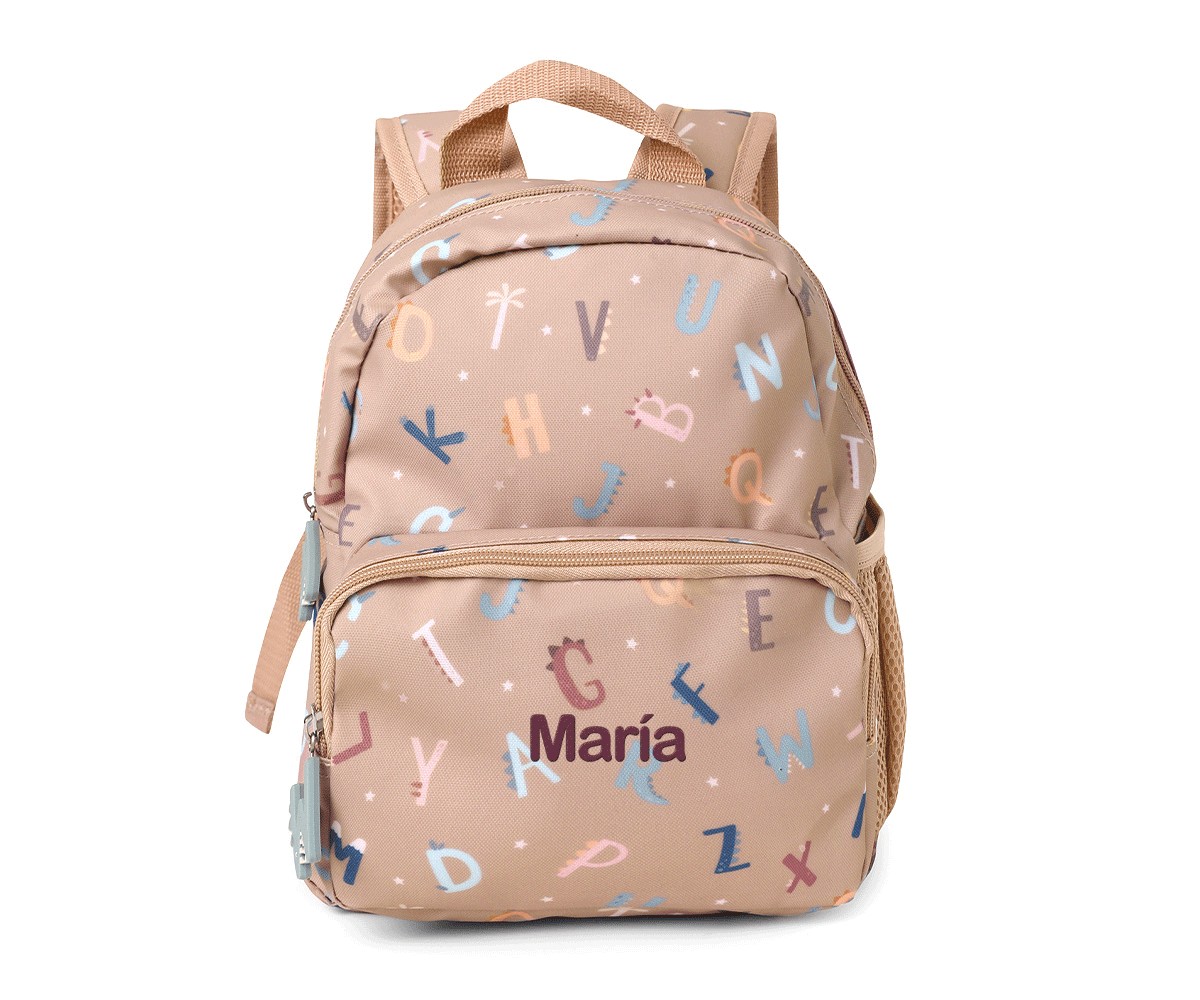 CARACTERÍSTICAS Medidas: altura 28cm x largura 25cm x profundidade 9cm Composição: 100% RPET (plástico reciclado) Fecho de clipe no peito Bolso externo com fecho largura 20cm x altura 12cm Design Ergonómico Alças almofadadas ajustáveis e costas acolchoadas que distribuem o peso sem sobrecarregar os ombros da criança. Capacidade Ideal Dois compartimentos principais espaçosos, bolso frontal com fecho e bolsos laterais em rede para garrafas ou pequenos objetos. Material Resistente Poliéster de alta densidade, impermeável e fácil de limpar, perfeito para o uso diário na escola. Personalização Total Leve e Compacta Pesando menos de 300 g, cabe confortavelmente em qualquer porta-mochila de carrinho ou nas costas de crianças de 3 a 6 anos.